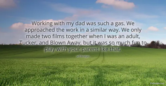 Bridges, Jeff. "Working with my dad was such a gas. We approached the work in a similar way. We only made two films together when I was an adult, Tucker, and Blown Away, but it was so much fun to play with your parent like that." FixQuotes. January 17, 2026. https://fixquotes.com/quotes/working-with-my-dad-was-such-a-gas-we-approached-67773/.