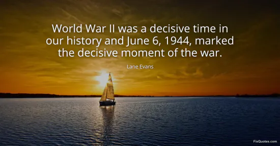 Evans, Lane. (2026, January 15). World War II was a decisive time in our history and June 6, 1944, marked the decisive moment of the war. FixQuotes. https://fixquotes.com/quotes/world-war-ii-was-a-decisive-time-in-our-history-99017/