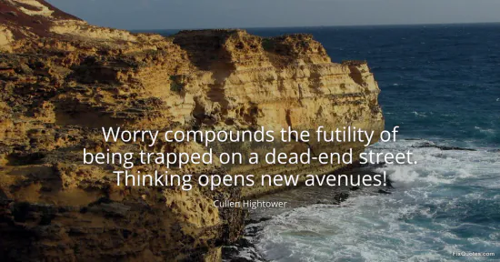 Hightower, Cullen. (2026, February 18). Worry compounds the futility of being trapped on a dead-end street. Thinking opens new avenues! FixQuotes. https://fixquotes.com/quotes/worry-compounds-the-futility-of-being-trapped-on-60207/