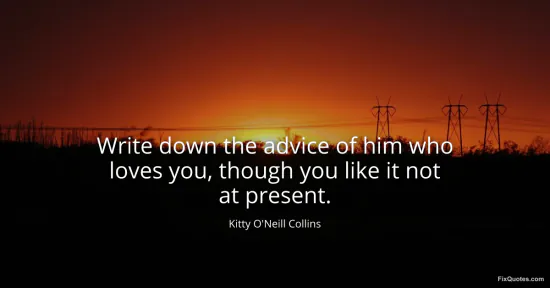 Collins, Kitty O'Neill. "Write down the advice of him who loves you, though you like it not at present." FixQuotes. January 15, 2026. https://fixquotes.com/quotes/write-down-the-advice-of-him-who-loves-you-though-133445/.