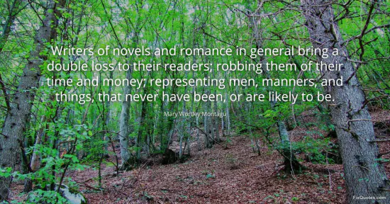 Montagu, Mary Wortley. "Writers of novels and romance in general bring a double loss to their readers; robbing them of their time and money; representing men, manners, and things, that never have been, or are likely to be." FixQuotes. January 16, 2026. https://fixquotes.com/quotes/writers-of-novels-and-romance-in-general-bring-a-127747/.