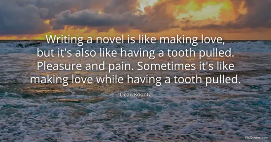 Koontz, Dean. "Writing a novel is like making love, but it's also like having a tooth pulled. Pleasure and pain. Sometimes it's like making love while having a tooth pulled." FixQuotes. January 17, 2026. https://fixquotes.com/quotes/writing-a-novel-is-like-making-love-but-its-also-41028/.