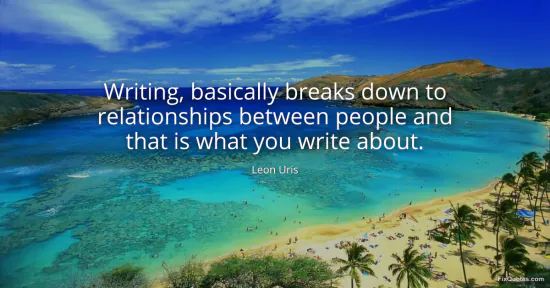 Uris, Leon. "Writing, basically breaks down to relationships between people and that is what you write about." FixQuotes. January 16, 2026. https://fixquotes.com/quotes/writing-basically-breaks-down-to-relationships-88232/.