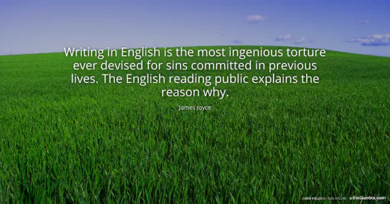 Joyce, James. "Writing in English is the most ingenious torture ever devised for sins committed in previous lives. The English reading public explains the reason why." FixQuotes. January 17, 2026. https://fixquotes.com/quotes/writing-in-english-is-the-most-ingenious-torture-35264/.