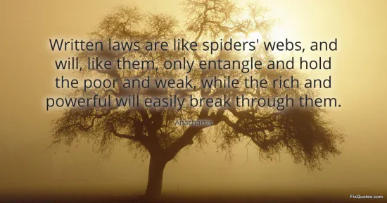 Anacharsis. "Written laws are like spiders' webs, and will, like them, only entangle and hold the poor and weak, while the rich and powerful will easily break through them." FixQuotes. January 15, 2026. https://fixquotes.com/quotes/written-laws-are-like-spiders-webs-and-will-like-38223/.