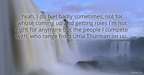 Lynch, Kelly. "Yeah, I do feel badly sometimes, not for whose coming up and getting roles I'm not right for anymore but the people I compete with, who range from Uma Thurman on up." FixQuotes. January 16, 2026. https://fixquotes.com/quotes/yeah-i-do-feel-badly-sometimes-not-for-whose-127067/.