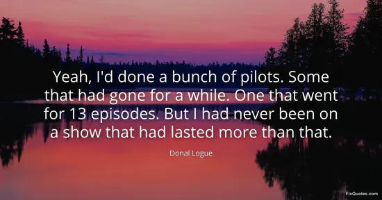 Logue, Donal. "Yeah, I'd done a bunch of pilots. Some that had gone for a while. One that went for 13 episodes. But I had never been on a show that had lasted more than that." FixQuotes. January 17, 2026. https://fixquotes.com/quotes/yeah-id-done-a-bunch-of-pilots-some-that-had-gone-66232/.