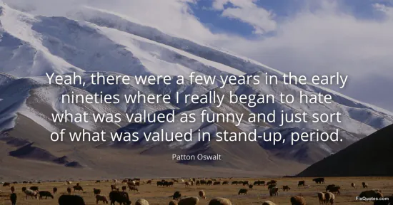 Oswalt, Patton. "Yeah, there were a few years in the early nineties where I really began to hate what was valued as funny and just sort of what was valued in stand-up, period." FixQuotes. January 16, 2026. https://fixquotes.com/quotes/yeah-there-were-a-few-years-in-the-early-nineties-85204/.