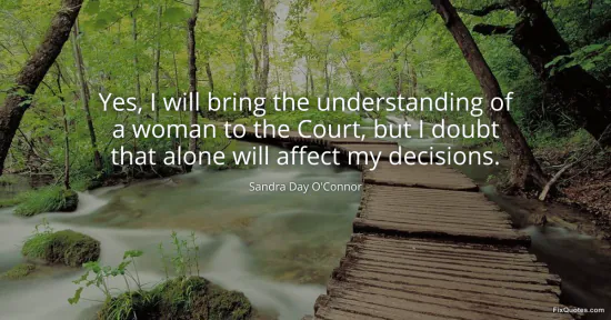 O'Connor, Sandra Day. (2026, January 16). Yes, I will bring the understanding of a woman to the Court, but I doubt that alone will affect my decisions. FixQuotes. https://fixquotes.com/quotes/yes-i-will-bring-the-understanding-of-a-woman-to-94575/