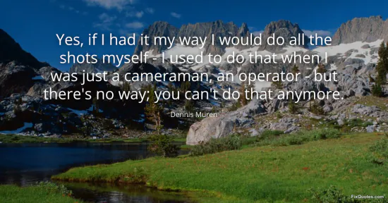 Muren, Dennis. (2026, January 15). Yes, if I had it my way I would do all the shots myself - I used to do that when I was just a cameraman, an operator - but there's no way; you can't do that anymore. FixQuotes. https://fixquotes.com/quotes/yes-if-i-had-it-my-way-i-would-do-all-the-shots-140347/