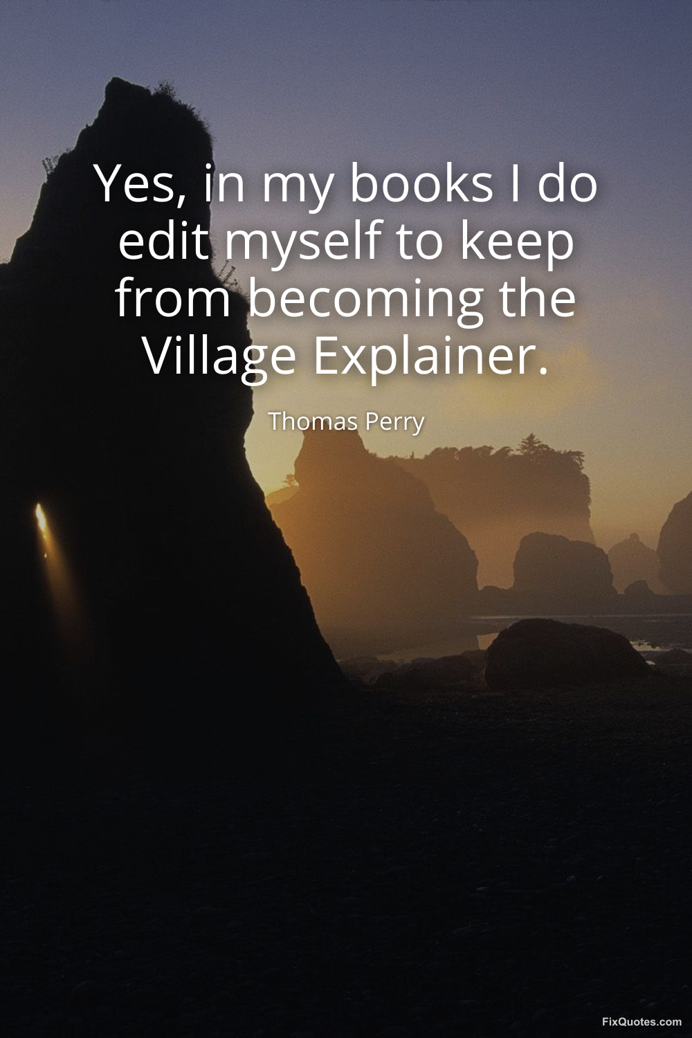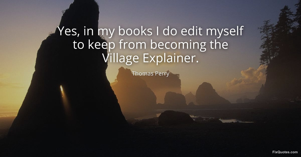 Perry, Thomas. (2026, January 16). Yes, in my books I do edit myself to keep from becoming the Village Explainer. FixQuotes. https://fixquotes.com/quotes/yes-in-my-books-i-do-edit-myself-to-keep-from-97706/
