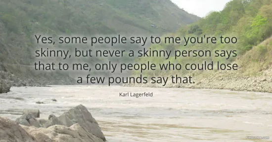 Lagerfeld, Karl. "Yes, some people say to me you're too skinny, but never a skinny person says that to me, only people who could lose a few pounds say that." FixQuotes. January 18, 2026. https://fixquotes.com/quotes/yes-some-people-say-to-me-youre-too-skinny-but-12162/.