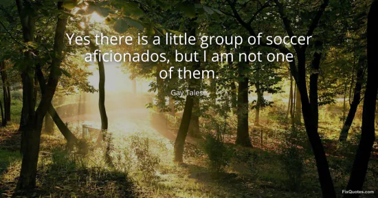 Talese, Gay. (2026, January 16). Yes there is a little group of soccer aficionados, but I am not one of them. FixQuotes. https://fixquotes.com/quotes/yes-there-is-a-little-group-of-soccer-aficionados-117458/