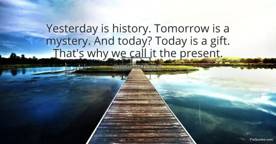 "Yesterday is history. Tomorrow is a mystery. And today? Today is a gift. That's why we call it the present." FixQuotes, 10 Feb. 2026, https://fixquotes.com/quotes/yesterday-is-history-tomorrow-is-a-mystery-and-109262/. Accessed 26 Feb. 2026.