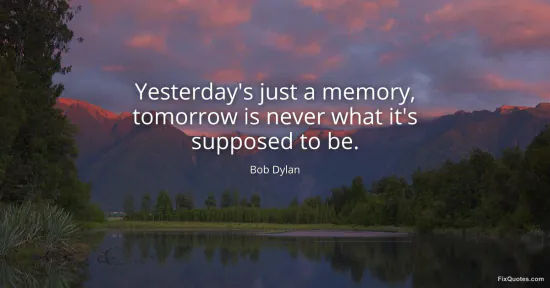 Dylan, Bob. "Yesterday's just a memory, tomorrow is never what it's supposed to be." FixQuotes. January 18, 2026. https://fixquotes.com/quotes/yesterdays-just-a-memory-tomorrow-is-never-what-5123/.