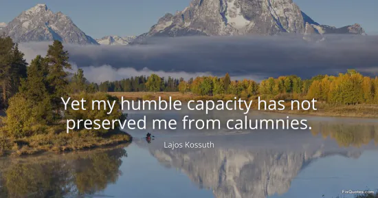 Kossuth, Lajos. (2026, January 16). Yet my humble capacity has not preserved me from calumnies. FixQuotes. https://fixquotes.com/quotes/yet-my-humble-capacity-has-not-preserved-me-from-104232/