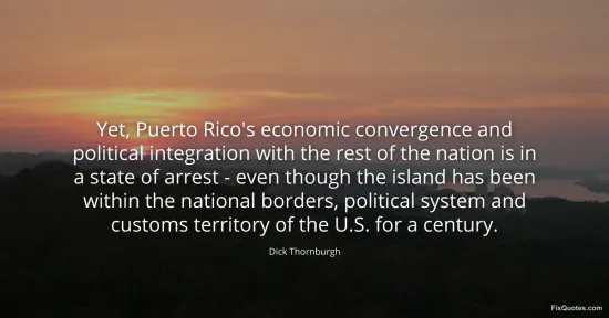 Thornburgh, Dick. (2026, January 17). Yet, Puerto Rico's economic convergence and political integration with the rest of the nation is in a state of arrest - even though the island has been within the national borders, political system and customs territory of the U.S. for a century. FixQuotes. https://fixquotes.com/quotes/yet-puerto-ricos-economic-convergence-and-41890/
