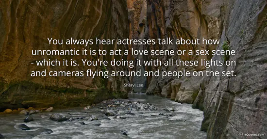 Lee, Sheryl. "You always hear actresses talk about how unromantic it is to act a love scene or a sex scene - which it is. You're doing it with all these lights on and cameras flying around and people on the set." FixQuotes. January 15, 2026. https://fixquotes.com/quotes/you-always-hear-actresses-talk-about-how-165829/.