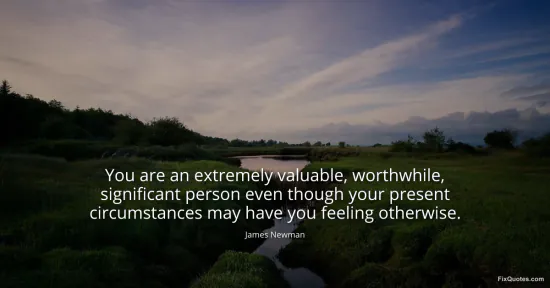 Newman, James. (2026, January 14). You are an extremely valuable, worthwhile, significant person even though your present circumstances may have you feeling otherwise. FixQuotes. https://fixquotes.com/quotes/you-are-an-extremely-valuable-worthwhile-163898/