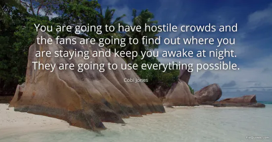 Jones, Cobi. "You are going to have hostile crowds and the fans are going to find out where you are staying and keep you awake at night. They are going to use everything possible." FixQuotes. January 15, 2026. https://fixquotes.com/quotes/you-are-going-to-have-hostile-crowds-and-the-fans-148708/.