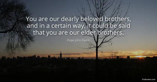 II, Pope John Paul. "You are our dearly beloved brothers, and in a certain way, it could be said that you are our elder brothers." FixQuotes. January 17, 2026. https://fixquotes.com/quotes/you-are-our-dearly-beloved-brothers-and-in-a-33405/.
