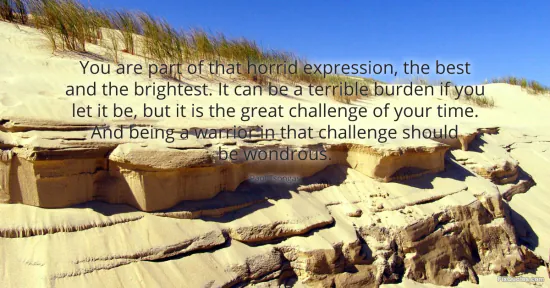 "You are part of that horrid expression, the best and the brightest. It can be a terrible burden if you let it be, but it is the great challenge of your time. And being a warrior in that challenge should be wondrous"