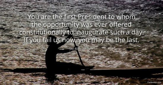 Sekulow, Jay Alan. (2026, January 17). You are the first President to whom the opportunity was ever offered constitutionally to inaugurate such a day. If you fail us now, you may be the last. FixQuotes. https://fixquotes.com/quotes/you-are-the-first-president-to-whom-the-60627/