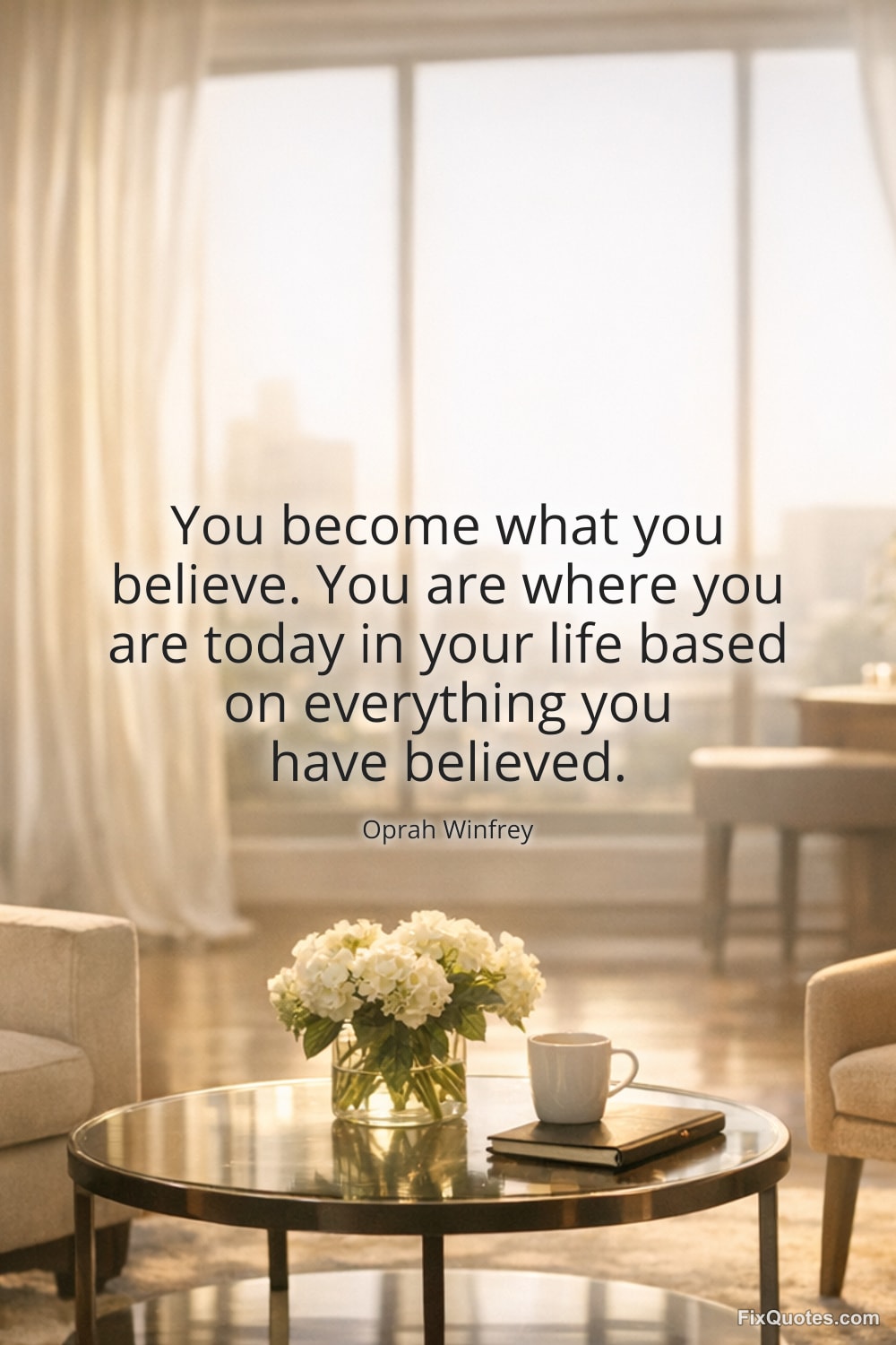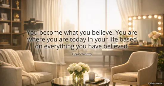 Winfrey, Oprah. "You become what you believe. You are where you are today in your life based on everything you have believed." FixQuotes. February 7, 2026. https://fixquotes.com/quotes/you-become-what-you-believe-you-are-where-you-are-171484/.