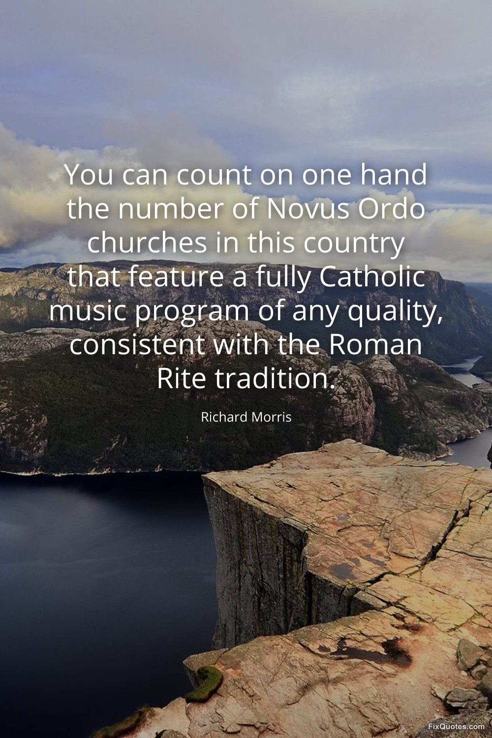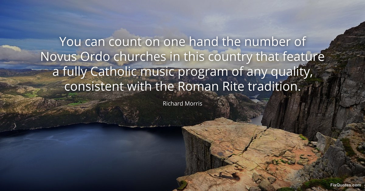 Morris, Richard. (2026, February 20). You can count on one hand the number of Novus Ordo churches in this country that feature a fully Catholic music program of any quality, consistent with the Roman Rite tradition. FixQuotes. https://fixquotes.com/quotes/you-can-count-on-one-hand-the-number-of-novus-13274/