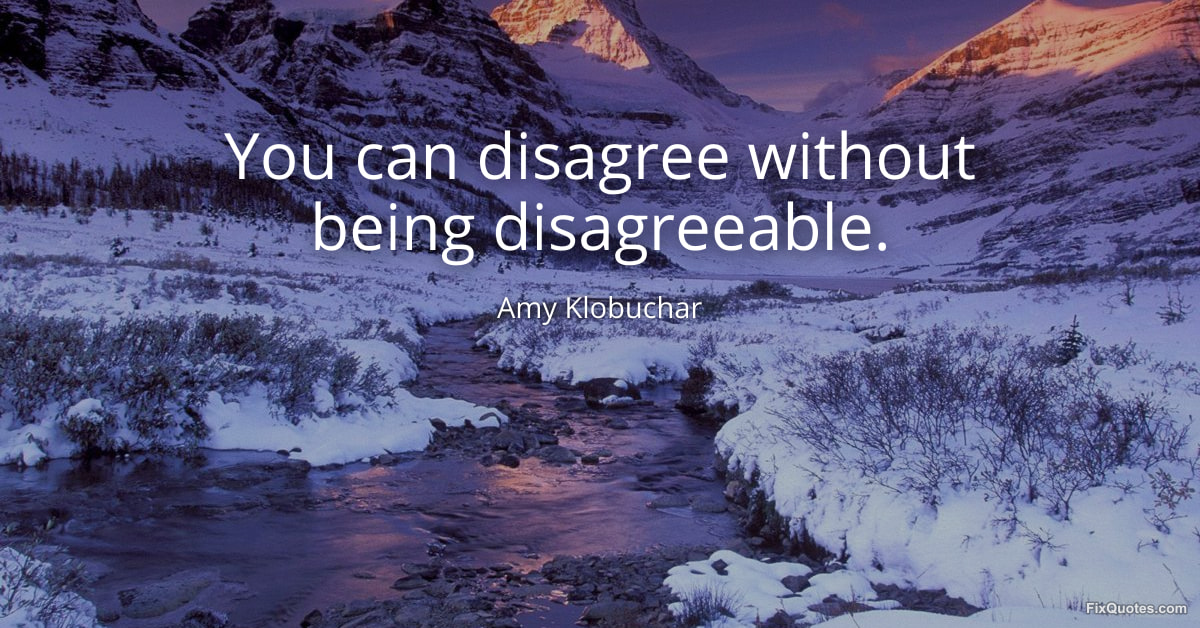 Klobuchar, Amy. (2026, January 30). You can disagree without being disagreeable. FixQuotes. https://fixquotes.com/quotes/you-can-disagree-without-being-disagreeable-184777/