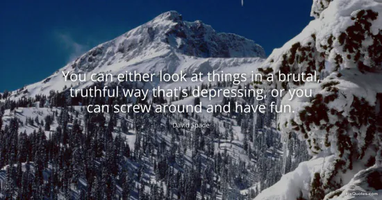 Spade’s line is a neat little thesis statement for a certain strain of Gen X comedy: if the world is going to be bleak, your options are either to stare straight into it and spiral, or to treat it like material and keep moving. The punch isn’t that “fun is better than depression.” It’s that he frames truth as “brutal” by default, as if honesty naturally arrives with a hangover, and “screw around” as an almost ethical counterweight. In that setup, goofing off isn’t denial so much as a coping mechanism with timing.