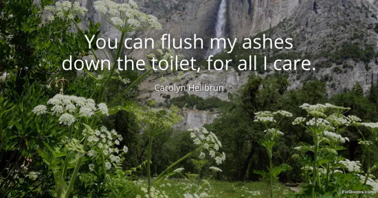 Heilbrun, Carolyn. (2026, January 16). You can flush my ashes down the toilet, for all I care. FixQuotes. https://fixquotes.com/quotes/you-can-flush-my-ashes-down-the-toilet-for-all-i-123977/