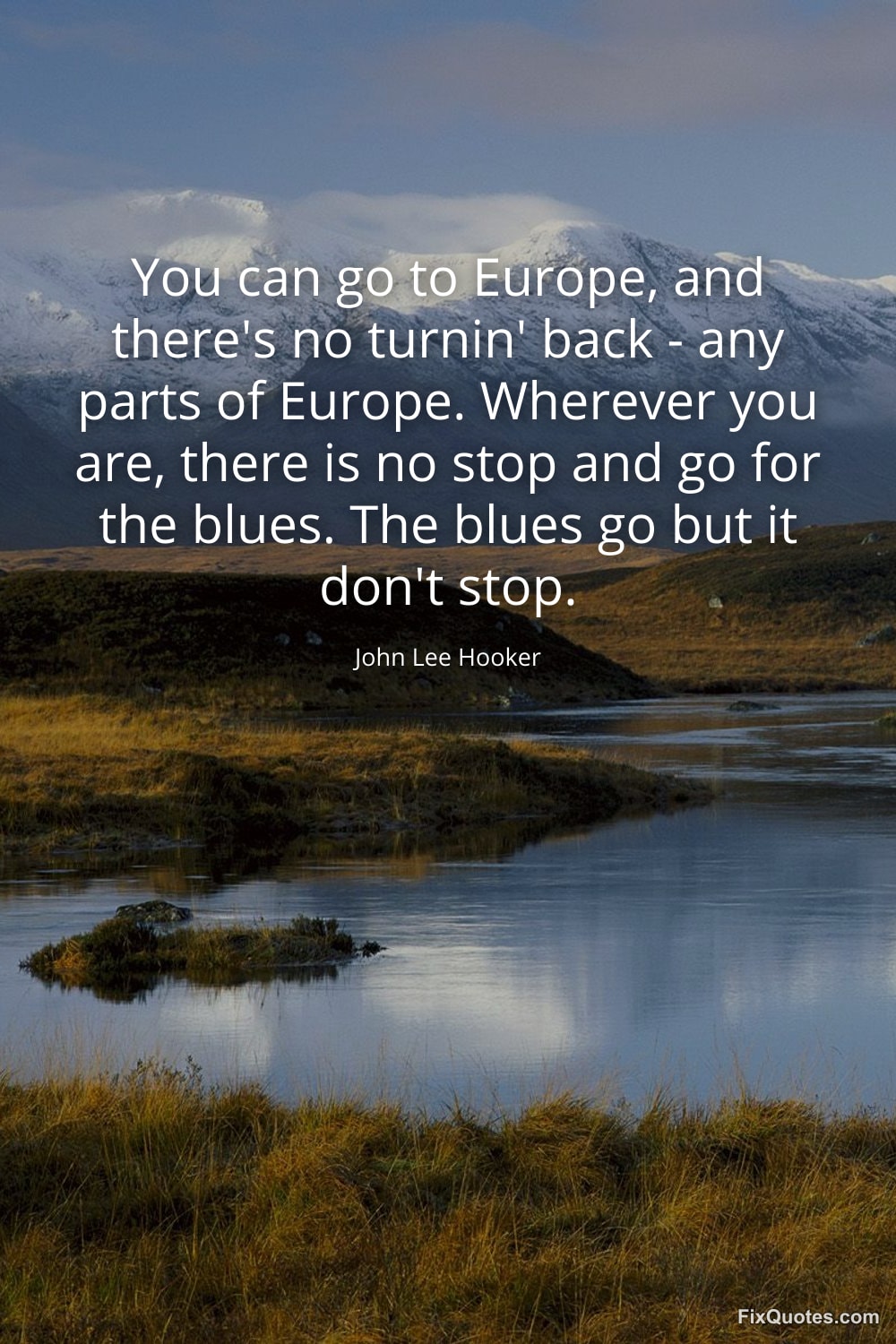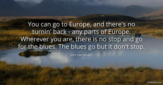 Hooker, John Lee. "You can go to Europe, and there's no turnin' back - any parts of Europe. Wherever you are, there is no stop and go for the blues. The blues go but it don't stop." FixQuotes. January 17, 2026. https://fixquotes.com/quotes/you-can-go-to-europe-and-theres-no-turnin-back-62808/.