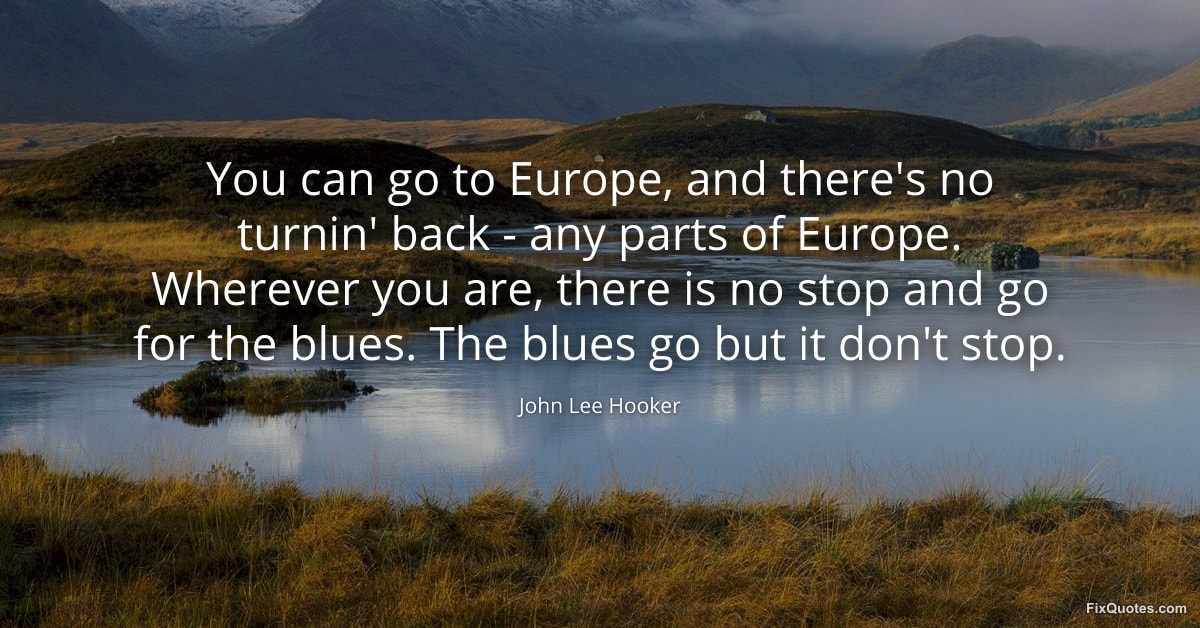 Hooker, John Lee. (2026, January 17). You can go to Europe, and there's no turnin' back - any parts of Europe. Wherever you are, there is no stop and go for the blues. The blues go but it don't stop. FixQuotes. https://fixquotes.com/quotes/you-can-go-to-europe-and-theres-no-turnin-back-62808/