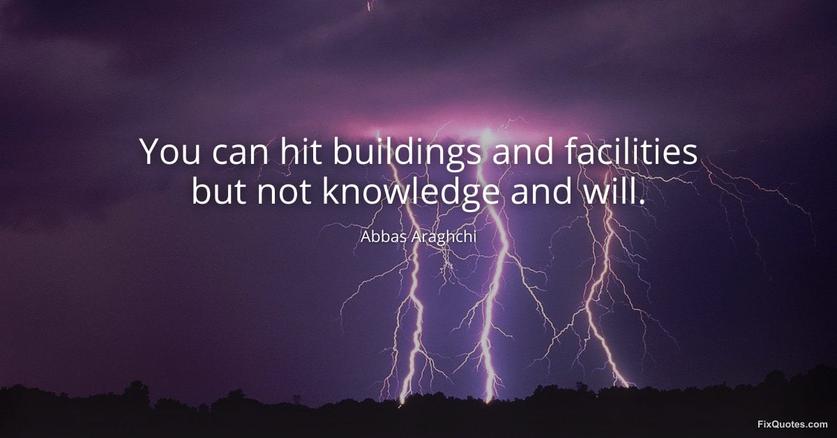 Araghchi, Abbas. (2026, February 26). You can hit buildings and facilities but not knowledge and will. FixQuotes. https://fixquotes.com/quotes/you-can-hit-buildings-and-facilities-but-not-185669/