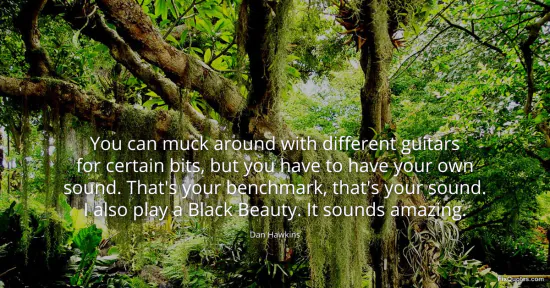 Hawkins, Dan. (2026, January 17). You can muck around with different guitars for certain bits, but you have to have your own sound. That's your benchmark, that's your sound. I also play a Black Beauty. It sounds amazing. FixQuotes. https://fixquotes.com/quotes/you-can-muck-around-with-different-guitars-for-38979/