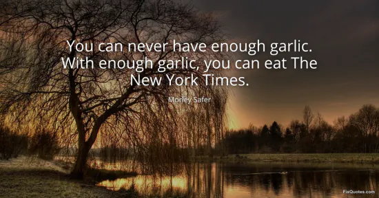 Safer, Morley. "You can never have enough garlic. With enough garlic, you can eat The New York Times." FixQuotes. January 15, 2026. https://fixquotes.com/quotes/you-can-never-have-enough-garlic-with-enough-147334/.