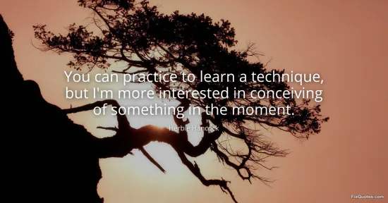 Technique is the price of admission; presence is the point. When Herbie Hancock says you can practice to learn a technique but he is more interested in conceiving something in the moment, he is drawing a hard line between competence and creation. The first can be drilled, packaged, graded. The second is risk: the willingness to step into a bar of music without a prewritten answer and trust your ear, your bandmates, and your nerves.