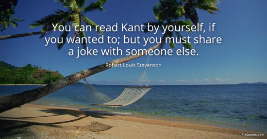 Stevenson, Robert Louis. "You can read Kant by yourself, if you wanted to; but you must share a joke with someone else." FixQuotes. January 15, 2026. https://fixquotes.com/quotes/you-can-read-kant-by-yourself-if-you-wanted-to-34325/.