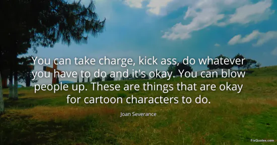 Severance, Joan. (2026, January 16). You can take charge, kick ass, do whatever you have to do and it's okay. You can blow people up. These are things that are okay for cartoon characters to do. FixQuotes. https://fixquotes.com/quotes/you-can-take-charge-kick-ass-do-whatever-you-have-110656/