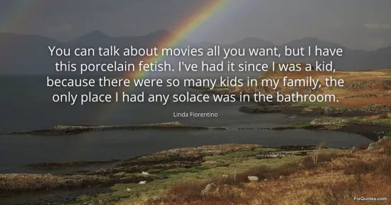 Fiorentino, Linda. (2026, January 16). You can talk about movies all you want, but I have this porcelain fetish. I've had it since I was a kid, because there were so many kids in my family, the only place I had any solace was in the bathroom. FixQuotes. https://fixquotes.com/quotes/you-can-talk-about-movies-all-you-want-but-i-have-134019/