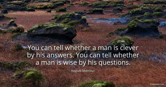 Mahfouz, Naguib. (2026, January 16). You can tell whether a man is clever by his answers. You can tell whether a man is wise by his questions. FixQuotes. https://fixquotes.com/quotes/you-can-tell-whether-a-man-is-clever-by-his-82718/