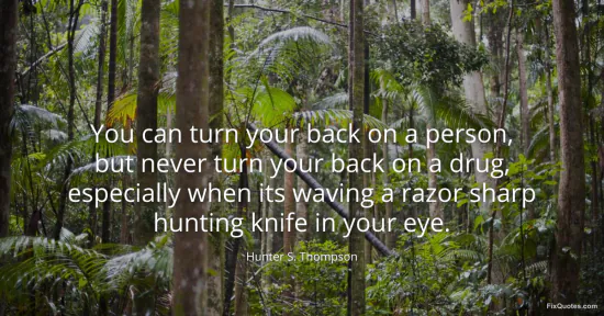 Thompson, Hunter S. "You can turn your back on a person, but never turn your back on a drug, especially when its waving a razor sharp hunting knife in your eye." FixQuotes. January 14, 2026. https://fixquotes.com/quotes/you-can-turn-your-back-on-a-person-but-never-turn-20036/.