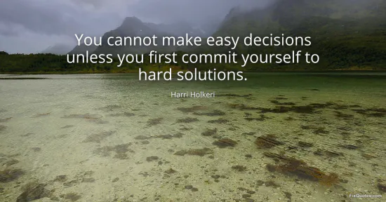 Holkeri, Harri. "You cannot make easy decisions unless you first commit yourself to hard solutions." FixQuotes. January 16, 2026. https://fixquotes.com/quotes/you-cannot-make-easy-decisions-unless-you-first-95804/.