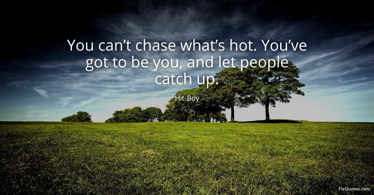 Hit-Boy. (2026, January 30). You can’t chase what’s hot. You’ve got to be you, and let people catch up. FixQuotes. https://fixquotes.com/quotes/you-cant-chase-whats-hot-youve-got-to-be-you-and-184637/