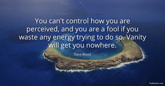 Blood, Dave. "You can't control how you are perceived, and you are a fool if you waste any energy trying to do so. Vanity will get you nowhere." FixQuotes. January 15, 2026. https://fixquotes.com/quotes/you-cant-control-how-you-are-perceived-and-you-161775/.