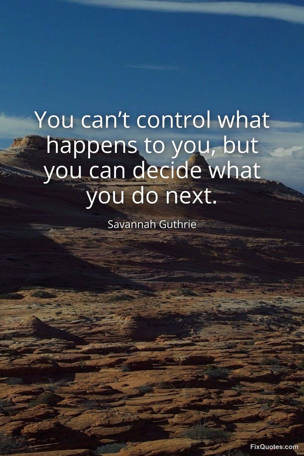 Guthrie, Savannah. "You can’t control what happens to you, but you can decide what you do next." FixQuotes. February 11, 2026. https://fixquotes.com/quotes/you-cant-control-what-happens-to-you-but-you-can-185267/.