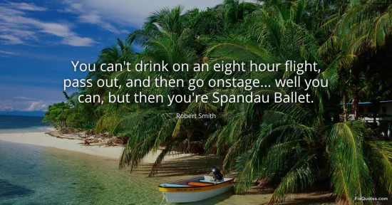 Smith, Robert. "You can't drink on an eight hour flight, pass out, and then go onstage... well you can, but then you're Spandau Ballet." FixQuotes. January 16, 2026. https://fixquotes.com/quotes/you-cant-drink-on-an-eight-hour-flight-pass-out-98464/.