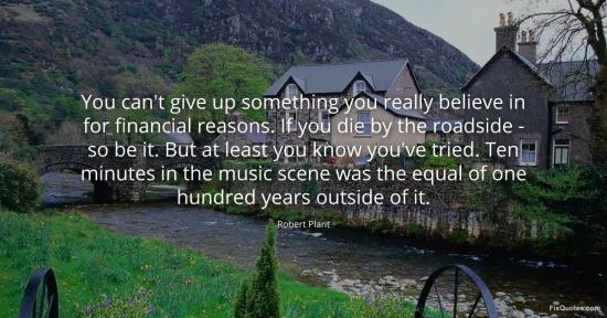 Plant, Robert. "You can't give up something you really believe in for financial reasons. If you die by the roadside - so be it. But at least you know you've tried. Ten minutes in the music scene was the equal of one hundred years outside of it." FixQuotes. January 18, 2026. https://fixquotes.com/quotes/you-cant-give-up-something-you-really-believe-in-7133/.