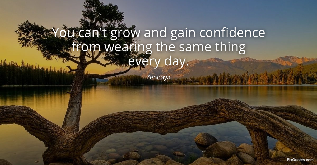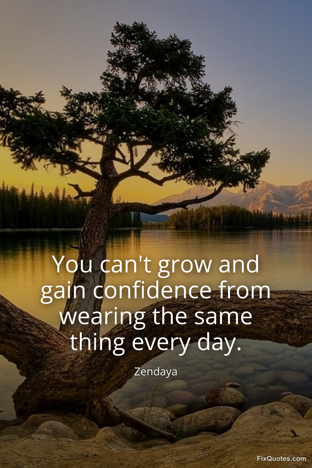 Zendaya. (2026, January 30). You can't grow and gain confidence from wearing the same thing every day. FixQuotes. https://fixquotes.com/quotes/you-cant-grow-and-gain-confidence-from-wearing-184675/